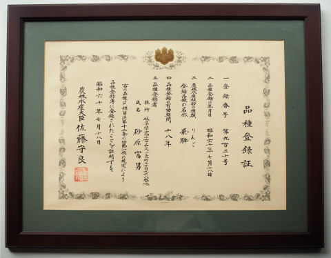先代会長の「飛騨にふさわしい新たな品種をつくりたい!」との想いから、試行錯誤を続けること20年、昭和60年に品種登録されました。